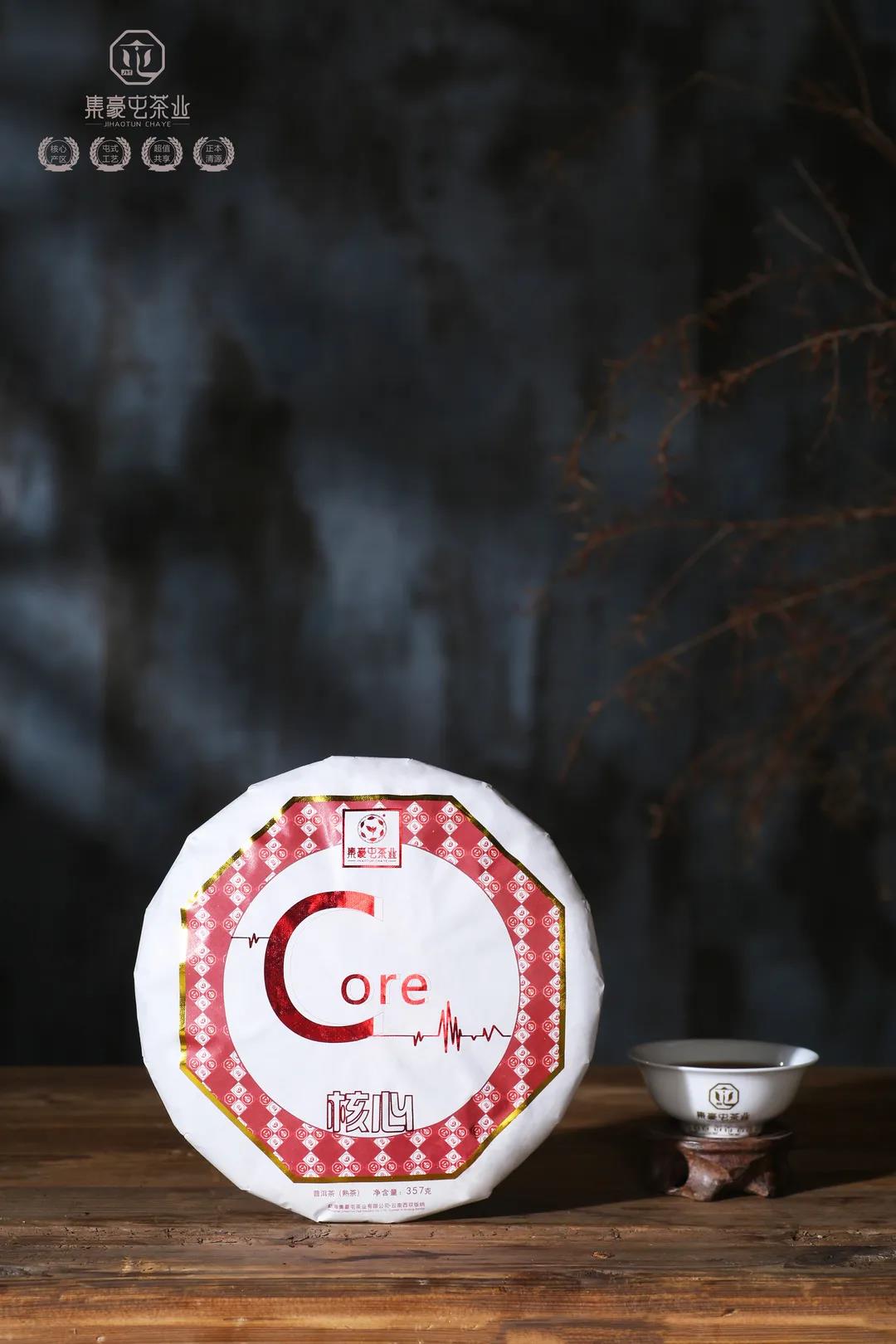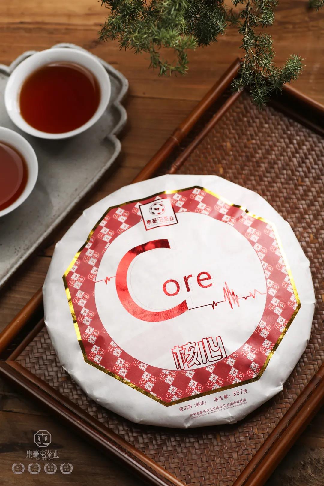 「核心」餅型周正,條索立體飽滿,銀毫交織,清晰可見,盡顯熟茶之美韻。