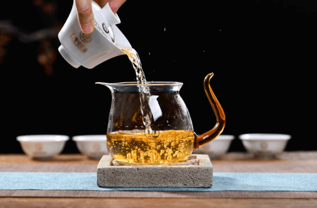 將沖泡好的茶湯倒入公道杯