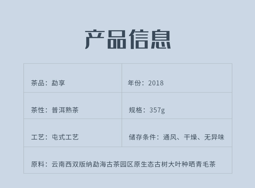 原料信息:云南西雙版納勐海古茶園區原生態喬木大葉種曬青毛茶