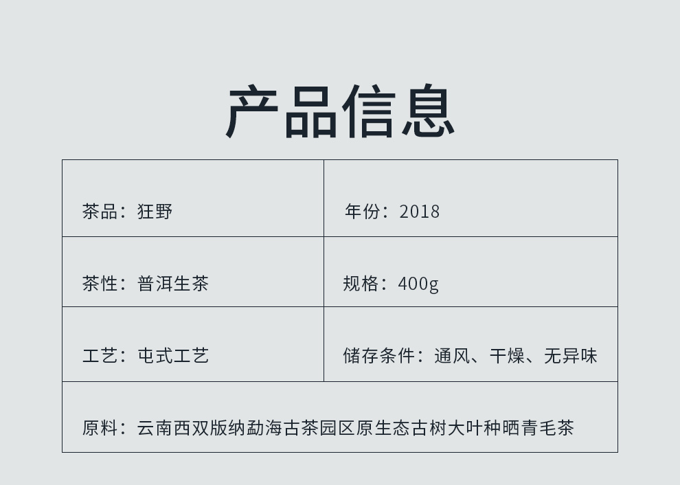原料信息:云南西雙版納勐海古茶園區原生態喬木大葉種曬青毛茶